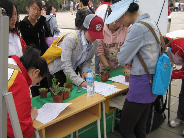 2011年是“國際森林年”,為倡導(dǎo)低碳生活,宣傳環(huán)保理念,石大環(huán)境保護(hù)協(xié)會發(fā)起以“攜手森林年,給力綠色石大”為主題的綠色兌換活動。此次主題活動分兩個階段進(jìn)行:第一階段為在學(xué)校南廣場進(jìn)行的綠色兌換登記活動;第二階段為在潤杰公寓舉行的現(xiàn)場兌換活動。
