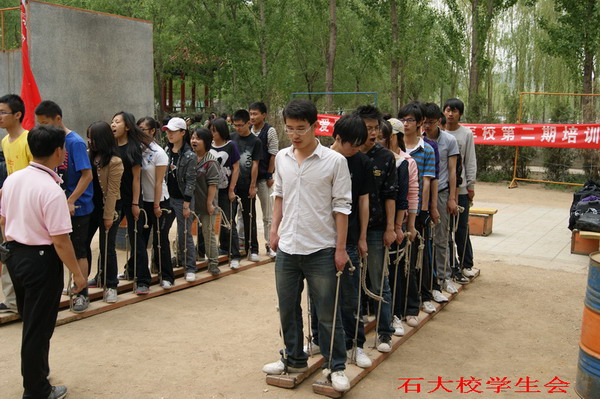 為紀念建黨九十周年,校學生會于5月7日在紅旗操場展開了第二屆素質拓展活動。