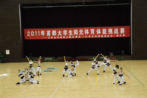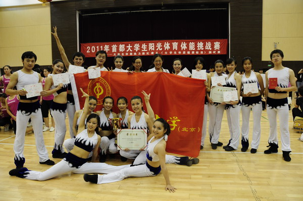 為推動體育運動在首都校園的廣泛開展,進一步提高廣大學生的健康水平,2011年首都大學生陽光體育體能挑戰賽5月28日在北京工商大學舉行。此次比賽共吸引了來自北京高校的20多支代表隊,共計大學生300余人。中國石油大學共派出了17名隊員(其中女生13名,男生4名)參加此次比賽。
