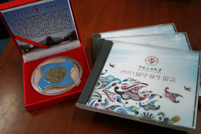 為了表達母校對應屆畢業生的深深祝福,中國石油大學為即將畢業的學子們準備了精美的紀念禮品,禮品包括一枚紀念幣和一張紀念光盤。
