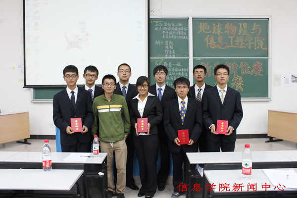 10月18日晚,地球物理與信息工程學院11級新生辯論賽決賽在三教307舉行。進入決賽的班級為經過一個月的角逐脫穎而出的勘查1班與自動化2班。