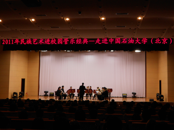 11月8日晚,“2011年民族藝術進校園管樂經典——走進中國石油大學”活動在中油大廈報告廳舉行,敦善室內銅管樂團進行了精彩的演出。