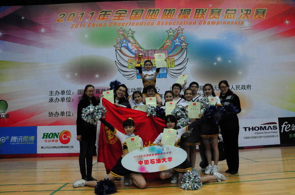 12月20至24日,2011年全國(guó)啦啦操聯(lián)賽總決賽在江蘇無(wú)錫舉行,中國(guó)石油大學(xué)啦啦操隊(duì)參加了舞蹈啦啦操街舞一級(jí)和花球啦啦操一級(jí)的比賽,分別獲得第一和第二的優(yōu)異成績(jī)。