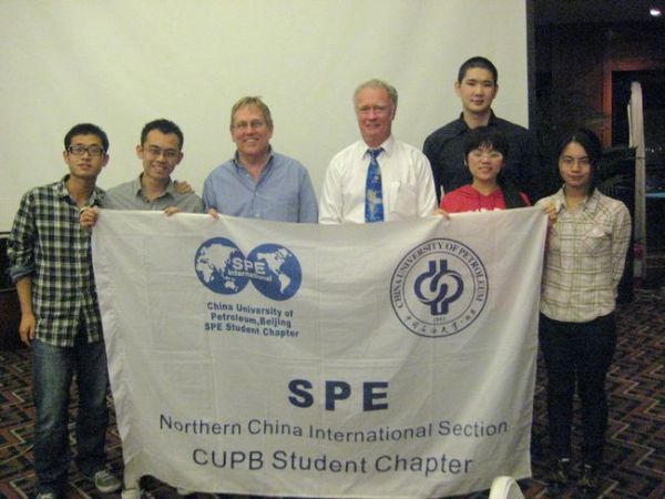 4月17日,中國石油大學SPE學生分會成員一行5人應SPE中國北方分會邀請前往北京麗都酒店參加中國區SPE北方分會月度會議。洛克石油(渤海)公司的David Hoke先生做了題為“趙東油田注水增產新技術”(Zhao Dong: Water Injection for Optimized Field Recovery)的精彩報告。