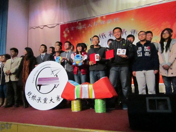 11月3日,第五屆十校聯(lián)合紙橋承重大賽總決賽在北京化工大學(xué)舉行。