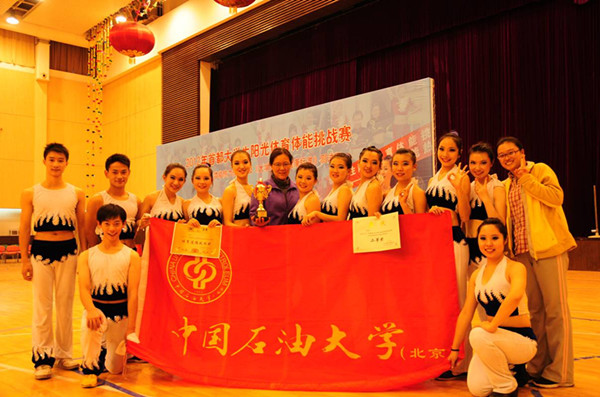 11月25日,首都大學(xué)生陽(yáng)光體育體能挑戰(zhàn)賽——大學(xué)生體能熱力操比賽暨《大學(xué)生體質(zhì)健康標(biāo)準(zhǔn)》測(cè)試賽在北京工商大學(xué)良鄉(xiāng)校區(qū)舉行。來(lái)自北京市37所高校的44支代表隊(duì)參加了比賽。中國(guó)石油大學(xué)健美操隊(duì)在比賽中頑強(qiáng)拼搏,獲得熱力操比賽二等獎(jiǎng)、測(cè)試賽三等獎(jiǎng),總成績(jī)?nèi)泉?jiǎng)的好成績(jī),并獲得體育道德風(fēng)尚獎(jiǎng)。