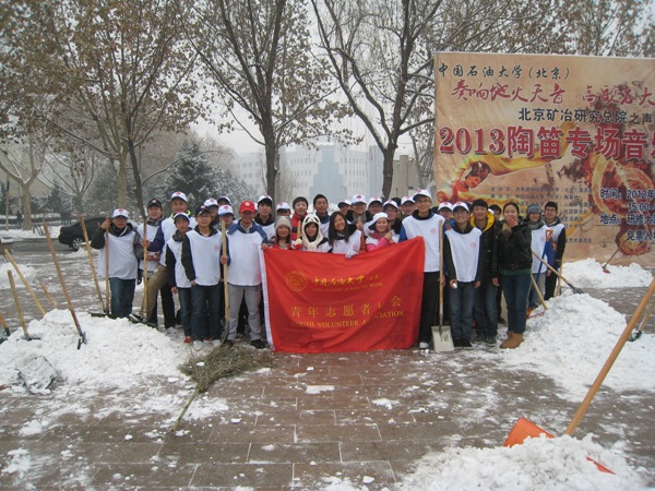 石大青年志愿者協(xié)會(huì)進(jìn)行校園義務(wù)掃雪活動(dòng)