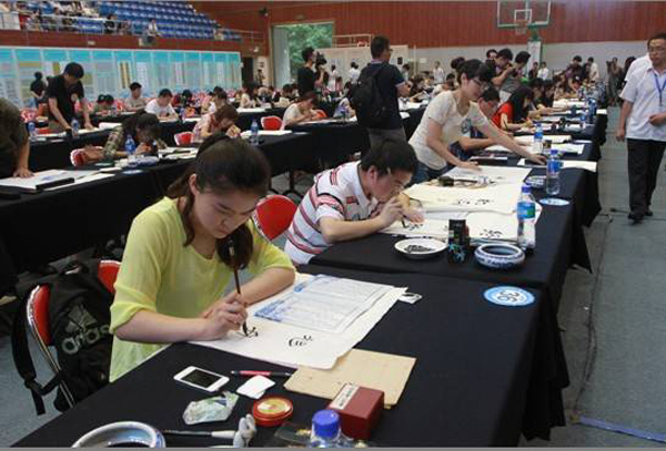 北京市大學生書法大賽由北京市教委主辦,首都師范大學承辦,通過鼓勵和推動大學生開展書法研習和創作,達到傳承書法藝術,發揚優秀文化傳統。本屆大賽以“品味筆墨靜雅,承繼文化精粹”為主題,向北京市41所參賽高校發出邀請,共收到456件優秀的復賽作品。經過評選,共有98人參加最后的決賽。
