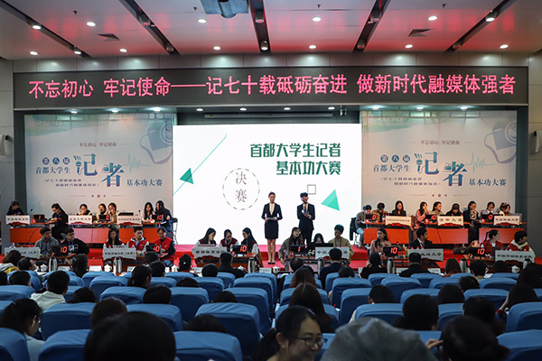 本屆大賽由北京高校新聞與文化傳播研究會(huì)主辦,以“記七十載砥礪奮進(jìn),做新時(shí)代融媒體強(qiáng)者”為主題,旨在提升高校的新聞宣傳能力,全面加強(qiáng)和推動(dòng)高校校園媒體建設(shè),提升首都大學(xué)生記者的綜合素質(zhì)。清華大學(xué)、中國傳媒大學(xué)、中國人民大學(xué)、中國石油大學(xué)等29所首都高校的學(xué)生記者代表隊(duì)參賽。《光明日報(bào)》教育部主任、高級編輯田延輝,《人民日報(bào)》客戶端創(chuàng)始人之一、《人民日報(bào)》中央廚房負(fù)責(zé)人趙婀娜,新華社官方微信公眾號主編陳子夏,中央廣播電視總臺(tái)資深記者長江,中央電視臺(tái)《焦點(diǎn)訪談》記者牛彥敏,《央視財(cái)經(jīng)》特約評論員張春蔚,人民網(wǎng)教育頻道主編熊旭,以及來自《中國青年報(bào)》、《中國教育報(bào)》、中國社會(huì)科學(xué)院等單位的業(yè)界專家學(xué)者擔(dān)任評委。
