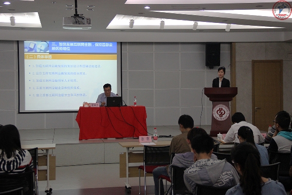 報告中,霍學文以納斯達克的發展歷程為例,結合我國互聯網金融的發展現狀,闡釋了互聯網金融的含義,并通過分析北京互聯網金融規模和發展環境,指出了北京互聯網金融的發展優勢,提出了進一步加快互聯網金融產業建設的總體思路和具體舉措。霍學文強調,技術改變一切,互聯網金融的本質是為人民服務,互聯網金融是未來金融業的發展趨勢,在抓住金融發展新機遇的同時,也要迎接挑戰,加強監管,控制和防范金融風險。在現場提問環節,霍學文還與同學們就網絡支付以及中美網絡金融現狀差異等問題進行了討論交流。