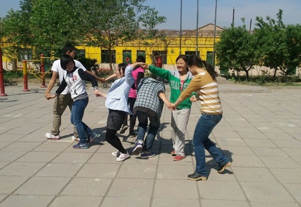 5月3日,石大青協(xié)的8名志愿者來到了昌平區(qū)智光殘障學(xué)校,陪幾十名殘障兒童一起玩游戲、做運(yùn)動。