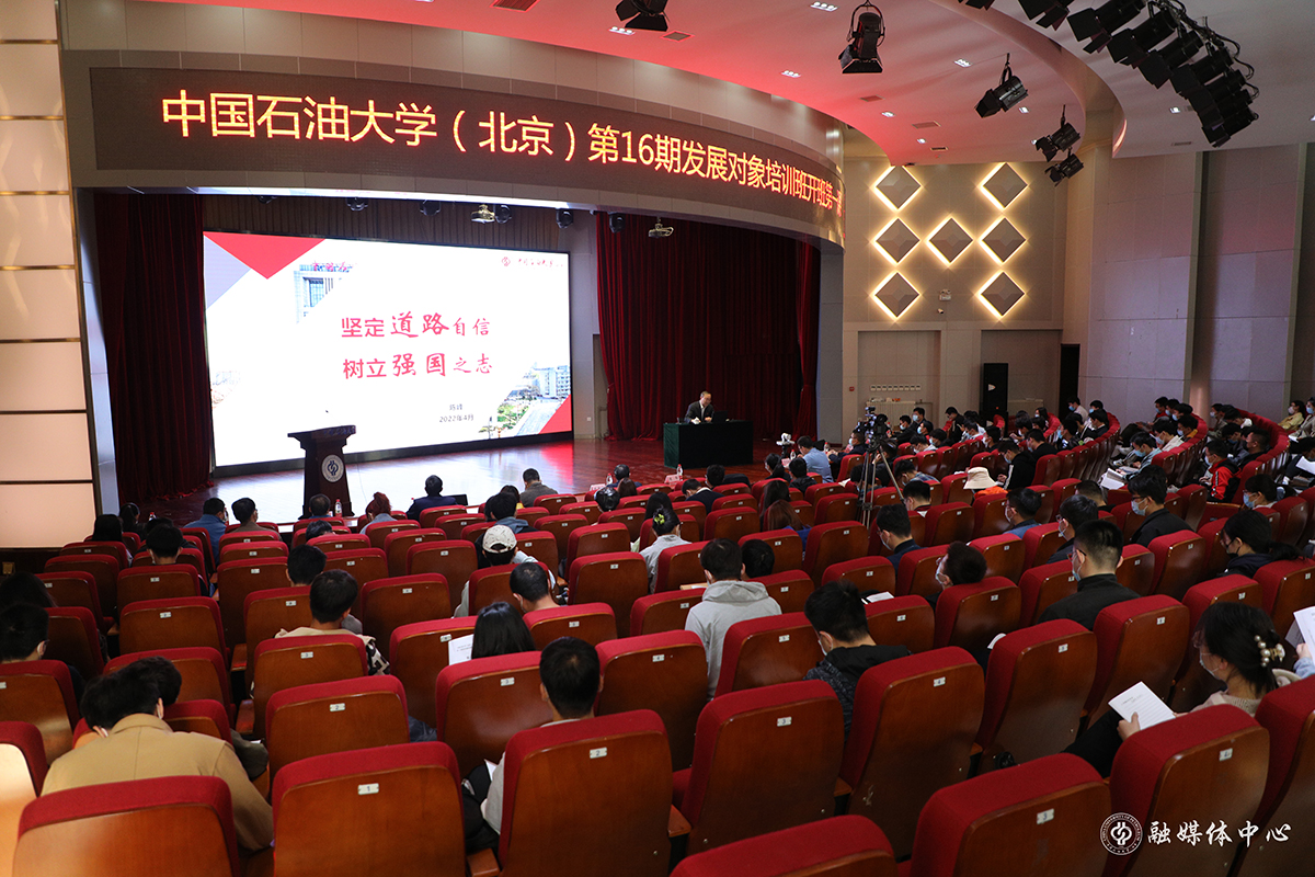 為切實(shí)加強(qiáng)新形勢(shì)下黨員發(fā)展對(duì)象的教育培養(yǎng)工作,持續(xù)深化黨史學(xué)習(xí)教育成果,幫助廣大青年學(xué)生錘煉提升黨性修養(yǎng),堅(jiān)定政治理想信念,4月16日上午,中國(guó)石油大學(xué)(北京)黨委書記陳峰以“堅(jiān)定道路自信,樹立強(qiáng)國(guó)之志”為題,為第16期發(fā)展對(duì)象培訓(xùn)班講授開班第一課。校本部和克拉瑪依校區(qū)的562名黨員發(fā)展對(duì)象參加培訓(xùn)。