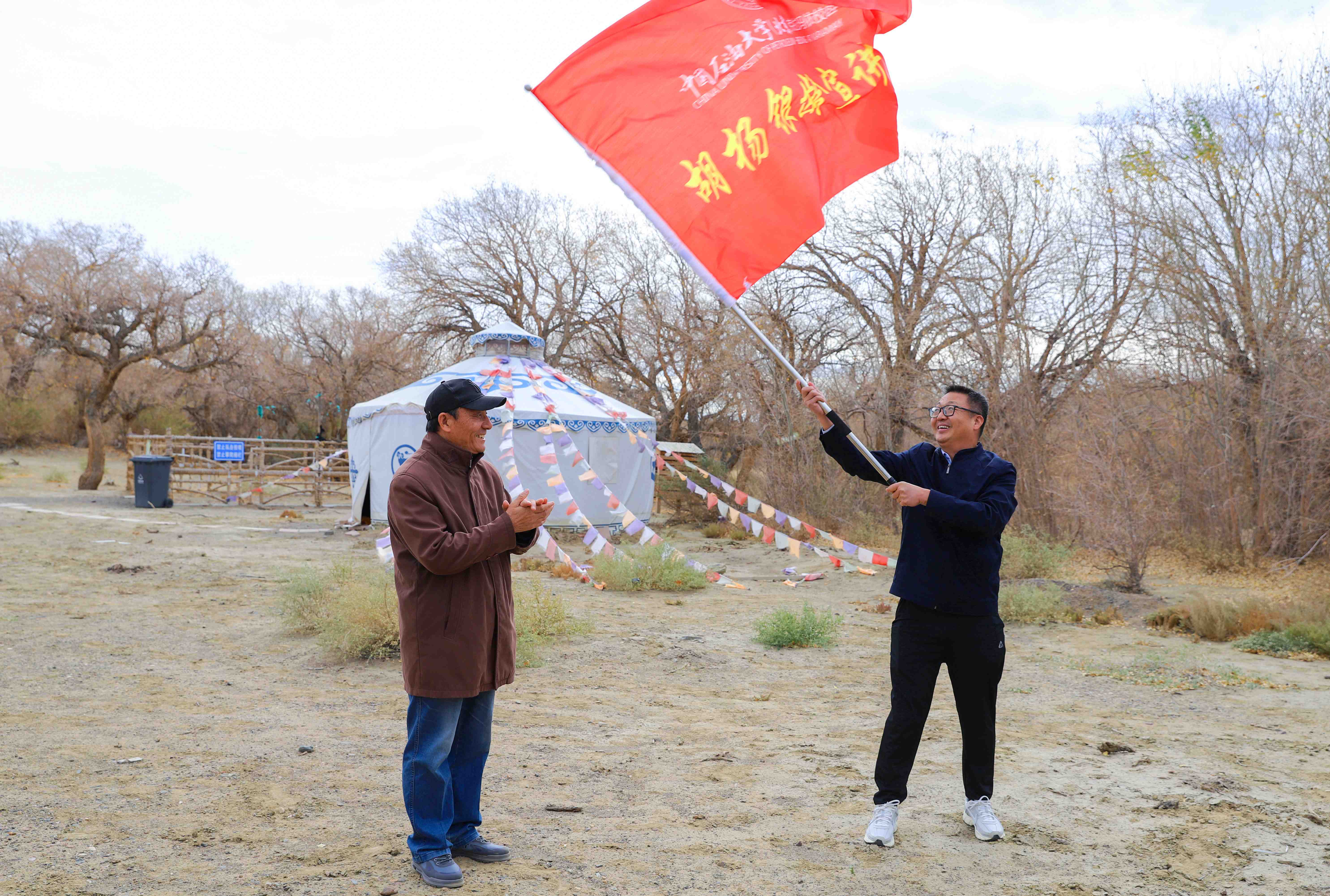 為充分發(fā)揮銀齡教師的優(yōu)勢(shì)和作用,做好總書記重要回信精神的宣傳闡釋,服務(wù)校區(qū)“三全育人”工作格局,校區(qū)組織成立胡楊銀齡宣講團(tuán)。在一片蒼勁挺拔的胡楊林前,李軍為銀齡胡楊宣講團(tuán)授旗,工商管理學(xué)院/馬克思主義學(xué)院銀齡教師王榮發(fā)進(jìn)行胡楊精神宣講。