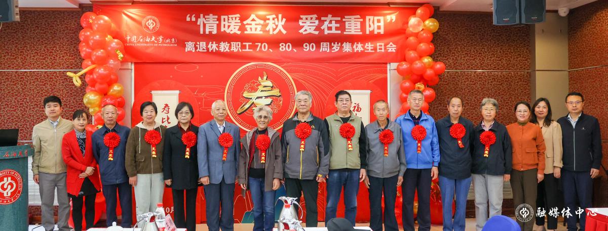 在重陽節來臨之際,中國石油大學(北京)于10月9日在翠宮第九會議室舉辦了主題為“情暖金秋 愛在重陽”的70、80、90周歲離退休教職工集體生日會。學校黨委書記王同奇、黨委副書記蒲俊霖以及各相關職能部門負責人為到場的16位老壽星送上生日祝福。