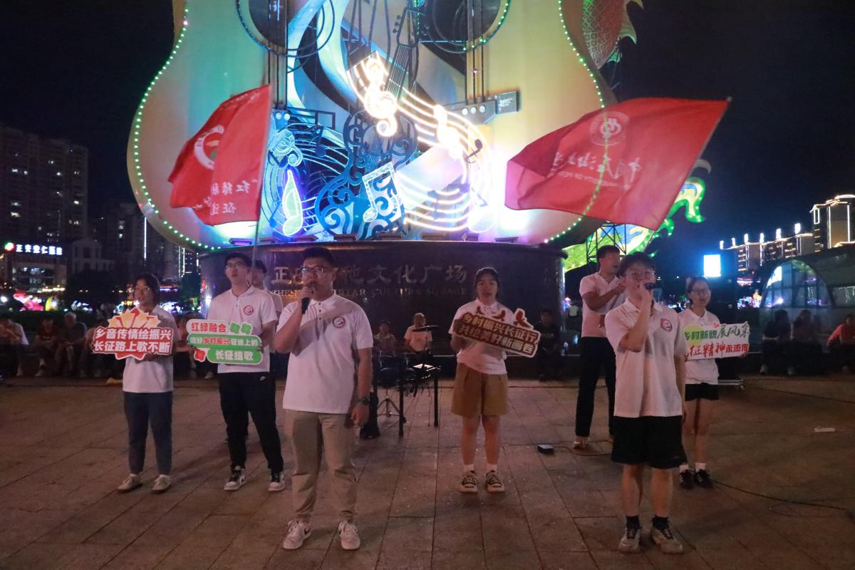 “遵義會(huì)議放光輝,全黨全軍齊歡慶”,到遵義去學(xué)習(xí)“偉大轉(zhuǎn)折”;“敵人棄甲丟煙槍,我軍乘勝趕路程”,到赤水河去體驗(yàn)經(jīng)典戰(zhàn)役的“神”和“奇”;“風(fēng)雨浸衣骨更硬,野菜充饑志越堅(jiān)”,到紅軍長(zhǎng)征翻越的第一座雪山去感悟“挑戰(zhàn)極限,不勝不休”......就這樣,實(shí)踐團(tuán)的成員們跟著《長(zhǎng)征組歌》的歌聲,沿著紅軍長(zhǎng)征的足跡一路走、一路看、一路唱、一路學(xué),歷時(shí)36天,總里程近8000公里,足跡覆蓋3個(gè)省份、8座城市的13個(gè)區(qū)縣,重溫戰(zhàn)火紛飛的歷史,銘記老一輩共產(chǎn)黨人帶領(lǐng)人民取得革命勝利的艱辛,探尋以云貴川地區(qū)為代表的紅軍長(zhǎng)征途徑地如何利用紅色資源和文化優(yōu)勢(shì)以“紅綠融合”賦能鄉(xiāng)村振興的密碼。