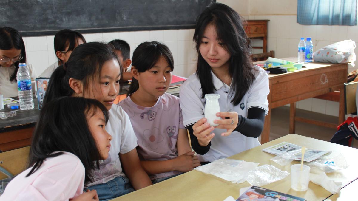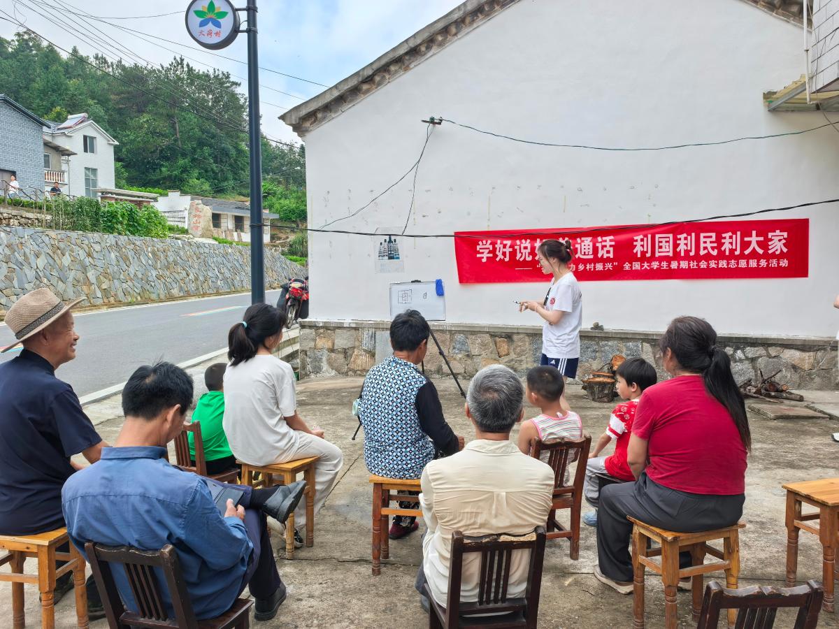 校團委“青筑科普”實踐團在吉林靖宇縣和北京昌平區開展實踐活動,將推普與環保科普、紅色教育相結合,設計“環保繞口令”等趣味環節,實現推普與綠色發展雙贏雙促。地球科學學院“大地之光?地蘊青疆”實踐團遠赴新疆庫爾勒和石河子兩地,通過地質科普、推普課堂、科學家精神宣講等形式,在邊疆地區推動國家通用語言文字普及與民族團結相融合。化學工程與環境學院“筑夢南華”實踐團深入云南省楚雄州南華縣紅土坡鎮,圍繞“實用、有趣、易掌握”的原則,通過情景模擬、發音拆解、對比跟讀等方式,巧妙糾正方言影響下的發音偏差;結合《標兵和炮兵》等經典繞口令互動,為山區孩子帶去充滿趣味的推普課堂;組織孩子們擺成“80”隊形,以清晰響亮的普通話齊聲呼喊“銘記歷史,珍愛和平”,將語言訓練與愛國主義教育深度融合。地球物理學院“石子筑夢”實踐團面向云南南華的留守兒童和中老年群體,開展“一對一”家訪教學、紅色故事課、話劇表演等推普活動,累計覆蓋200余人,有效提升了村民的語言應用信心。外國語學院“紅鄉語橋”實踐團赴安徽金寨大灣村,通過入戶調研、座談交流、推普課堂等方式,深入了解村民在日常生活、子女教育、村務溝通、經濟往來等方面的語言使用需求,創新采用“方言對譯”“紅色詩歌朗讀”等互動形式,讓普通話學習變得生動有趣。