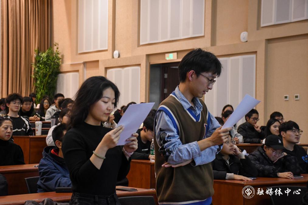 現(xiàn)場學(xué)生圍繞“如何準(zhǔn)備一個(gè)陌生角色”“舞臺表演與影視表演的差異”“青年如何走近戲劇”等問題與常玉紅展開交流。常玉紅還指導(dǎo)同學(xué)們進(jìn)行即興表演練習(xí),體驗(yàn)角色創(chuàng)造的初步過程。
