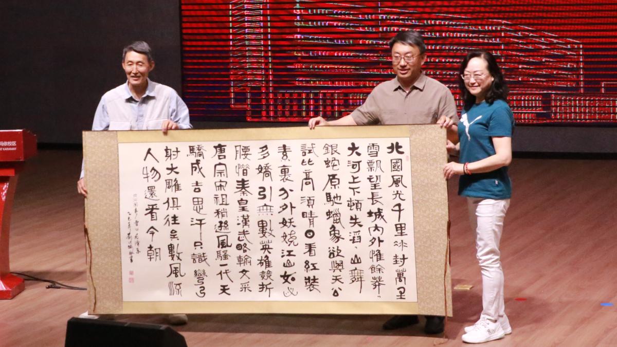 近日,中石大離退休工作處組織北京市知名書畫家李如、任東會,中石大退休教師代表等赴克拉瑪依校區開展慰問與文化交流活動。