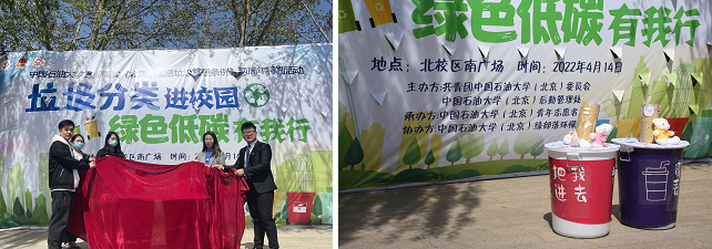 在《北京市垃圾分類管理條例》出臺兩周年之際,4月14日中午,中國石油大學(北京)青年志愿者協會聯合學校綠部落環保協會等12家志愿公益類社團,組織開展“垃圾分類進校園,綠色低碳有我行”特別活動。昌平區南邵鎮黨委宣傳委員于滿、團委書記秦雨萱,學校團委工作人員及師生等1000余人參加活動。