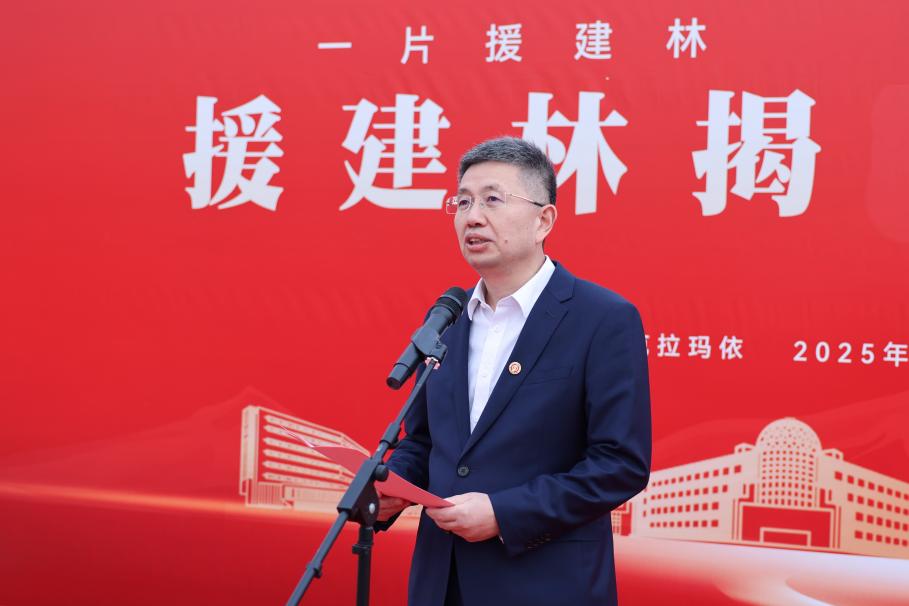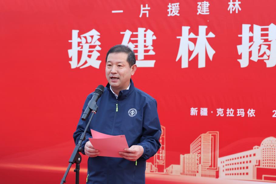 王同奇在主持中表示,這片由援建教師親手種植的胡楊林,象征著教育援疆事業在這片熱土上“落地生根、枝繁葉茂”,更承載著教育援疆的深情厚誼,凝聚著多方共建、校地協同的豐碩成果。援建林揭牌儀式,不僅是一段情誼的“里程碑”,更是一段新征程的“起跑線”。這片援建林,將與所有扎根新疆的教育者一起成長,與服務教育援疆的克拉瑪依校區共同奮進,見證西部高等教育振興之路越走越寬。