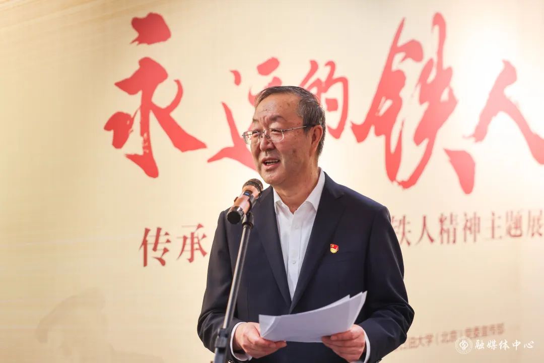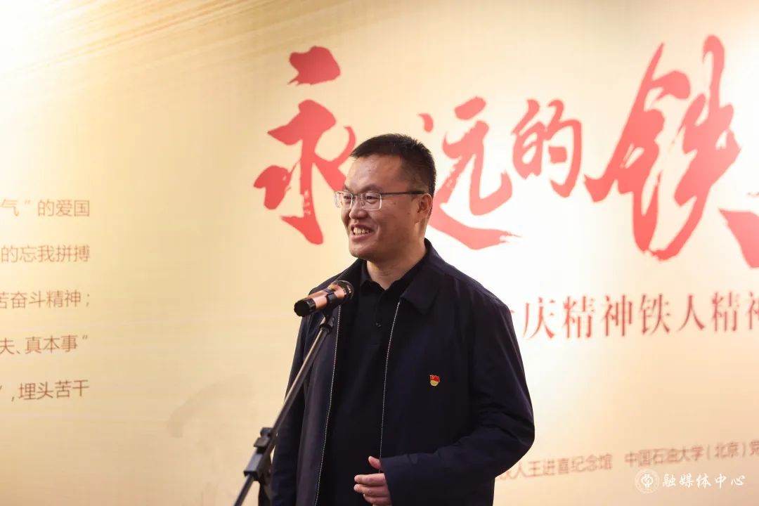蘇愛華在致辭中表示,大慶鐵人王進喜紀念館始終大力弘揚大慶精神鐵人精神,將大慶精神鐵人精神研究的成果進行轉化和輸出,提煉基本陳列的精華,開發設計了此次展覽。在鐵人王進喜同志誕辰一百周年之際,紀念館把中石大作為全國巡展的第一站,希望能夠在中石大掀起學習英雄、崇尚英雄的熱潮,激勵師生為中華民族偉大復興作出貢獻。