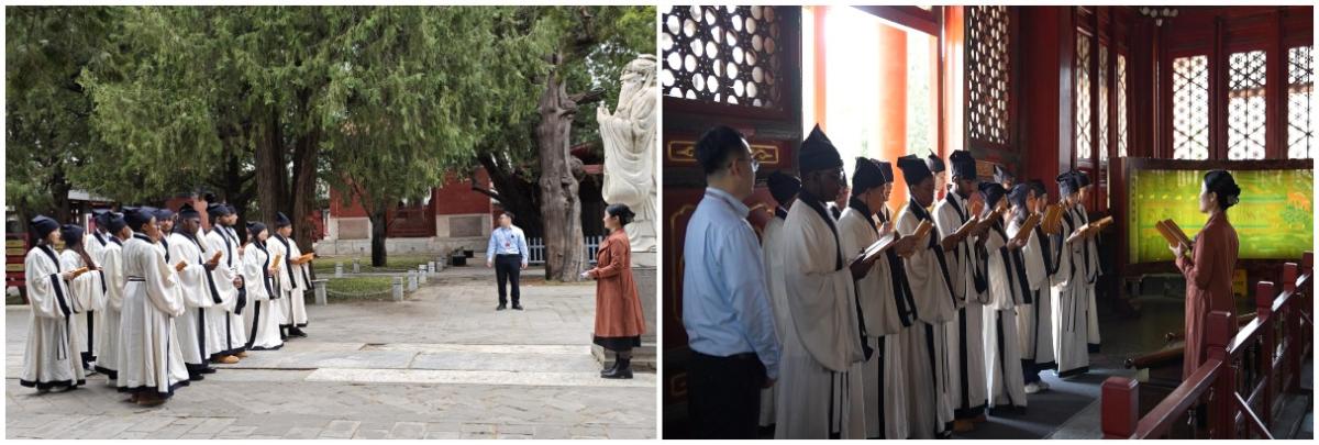 中石大對(duì)外漢語(yǔ)名師與孔廟和國(guó)子監(jiān)博物館專家為來(lái)華留學(xué)生實(shí)地講授“中國(guó)傳統(tǒng)儒家文化大課”。在孔廟大成殿前,來(lái)華留學(xué)生在博物館研究員陸承指導(dǎo)下,身著明代祭孔禮服行四拜禮,感受中國(guó)尊師重教傳統(tǒng);在進(jìn)士題名碑林與十三經(jīng)碑林實(shí)地調(diào)研學(xué)習(xí)198通石碑、63萬(wàn)字石經(jīng)的文化背景,系統(tǒng)了解了科舉制度演變及拓印技藝對(duì)文化傳播的推動(dòng)作用;在辟雍大殿齊誦《禮記·禮運(yùn)篇》經(jīng)典篇章,結(jié)合本國(guó)文化解讀“天下為公”的當(dāng)代價(jià)值。