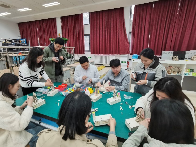 在參觀實踐環節,新進職工一起走進學校工程訓練中心,參觀智能產線,體驗3D打印造物,齊心協力組裝了由激光切割機現場切割的抽油機模型,在探秘工程世界、體驗科技奧妙的同時,進一步激發知校、愛校、榮校的責任感和使命感。