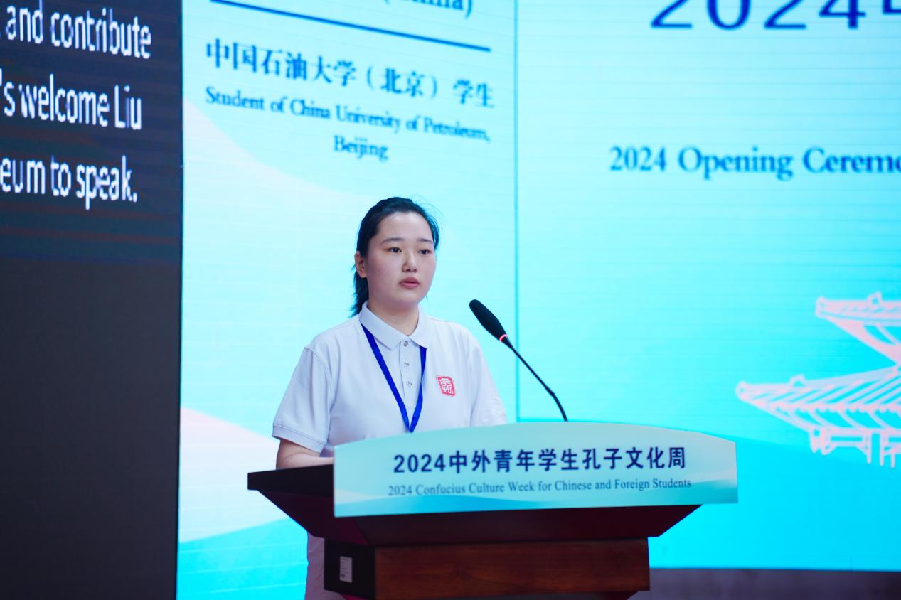 學(xué)校外國語學(xué)院英語專業(yè)2022級(jí)本科生劉昱言在活動(dòng)開幕式上發(fā)言,表示將帶著對(duì)儒家文化的無限敬仰與深切向往,沿著先賢的足跡,與中外青年朋友品味傳奇佳話、品嘗美味佳肴、體驗(yàn)齊風(fēng)魯韻、共享發(fā)展成果,思想碰撞、學(xué)用相長,在學(xué)習(xí)中收獲友誼。
