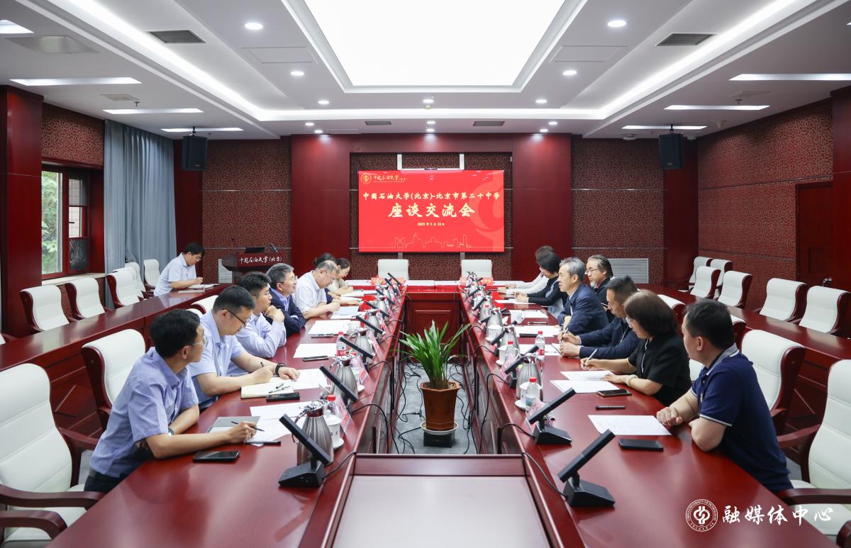 座談會后,中石大副校長黃磊、北京市第二十中學副校長吳玉剛代表兩校簽署了合作協議。雙方相關職能部門負責人參加座談會并見證了簽約儀式。