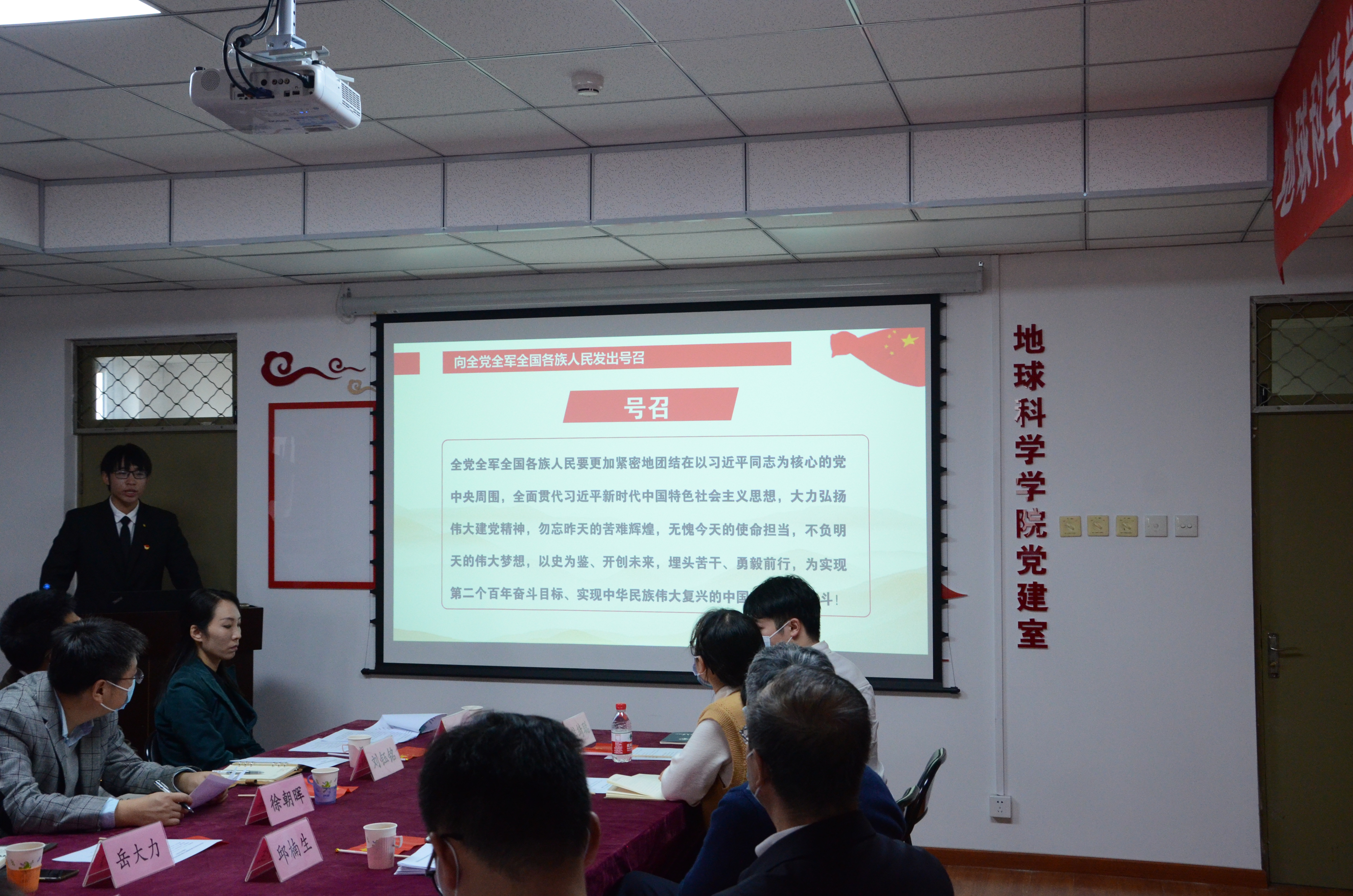 黨日活動以“學習貫徹十九屆六中全會,激發‘十四五’建設新動能”為主題,學校黨委書記陳峰,黨委組織部、地球科學學院相關負責人,以及“精鑄匠心”開發地質導學團隊黨支部、“砥志研思”油氣成藏定量分析科研攻關黨支部成員等參加活動。