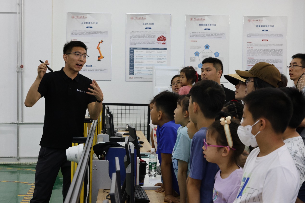 在工業(yè)自動(dòng)化實(shí)驗(yàn)室,“小小工程師”們學(xué)習(xí)了智能制造設(shè)備的工作流程,了解到該智能產(chǎn)線融合了數(shù)字化、網(wǎng)絡(luò)化制造技術(shù),通過AGV小車與智能倉儲(chǔ)、加工島、檢測裝配單元的協(xié)同配合,可在無人條件下完成零件生產(chǎn),充分領(lǐng)略了現(xiàn)代工業(yè)的高效與精密。