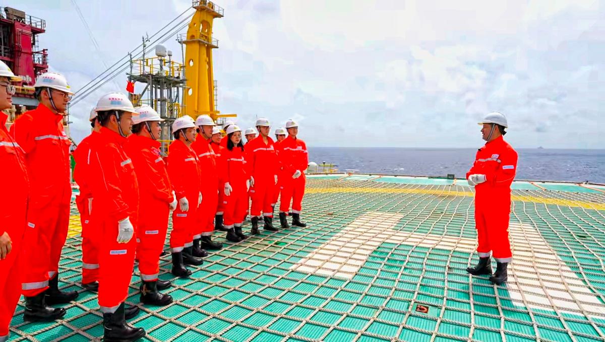 師生黨員前往平臺中控室、鉆臺甲板、月池、餐廳、宿舍等現場親身體驗海洋油氣鉆完井作業過程和生活設施。