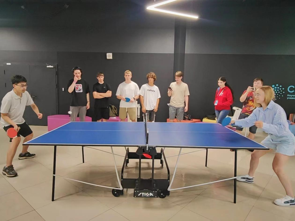 在索契天狼星科技大學(xué),營(yíng)員參觀(guān)了科研樓,與基因和生命科學(xué)研究中心、信息科學(xué)與人工智能研究中心負(fù)責(zé)人進(jìn)行交流,了解了該校的整體情況和科研實(shí)力。來(lái)自中石大的三位營(yíng)員將漢語(yǔ)版俄羅斯文學(xué)著作、漢語(yǔ)現(xiàn)代詩(shī)集等個(gè)人書(shū)籍捐贈(zèng)給該校。夏令營(yíng)還特別增設(shè)了中國(guó)主題開(kāi)放交流活動(dòng),當(dāng)?shù)貙W(xué)生就中國(guó)教育、美食、文化、旅游等感興趣的話(huà)題與營(yíng)員進(jìn)行了熱烈討論,雙方開(kāi)展了乒乓球友誼賽。