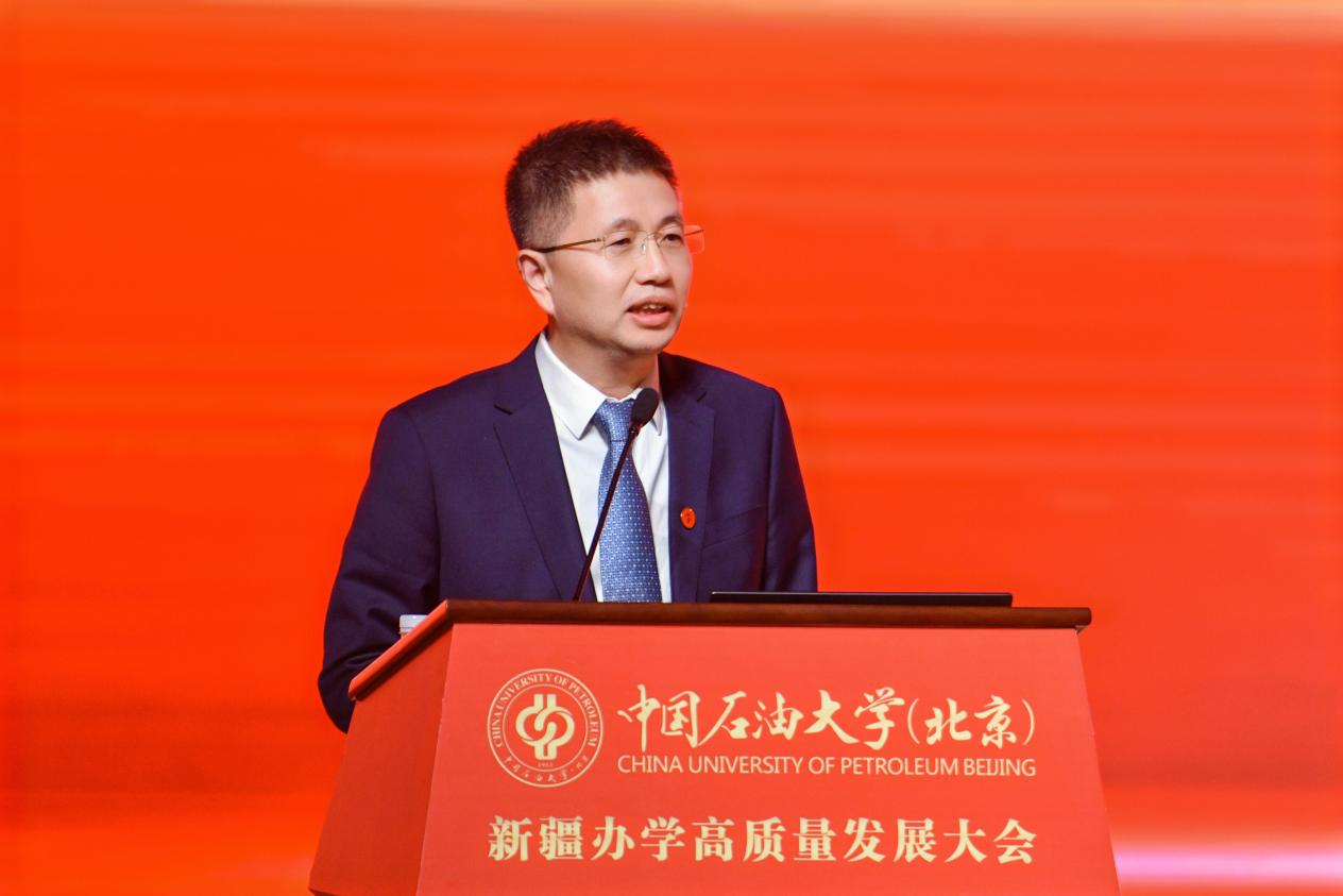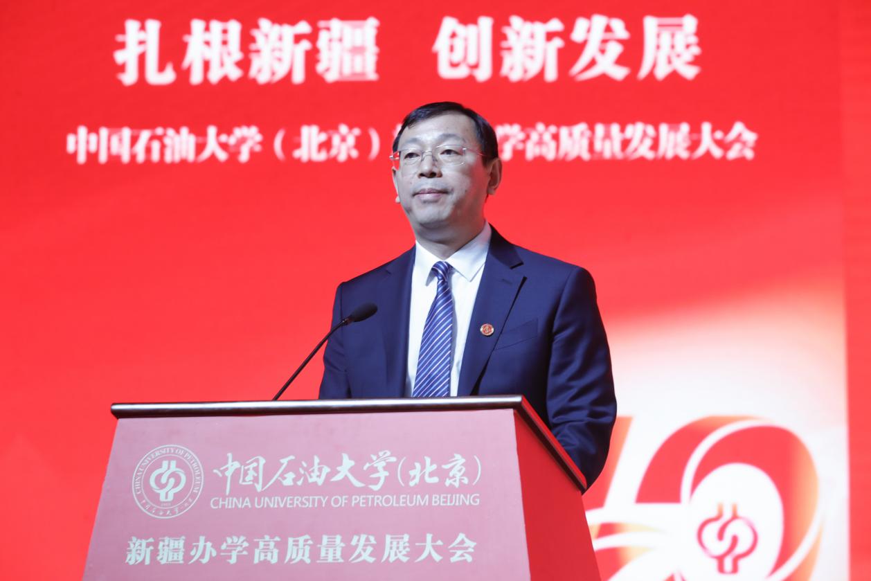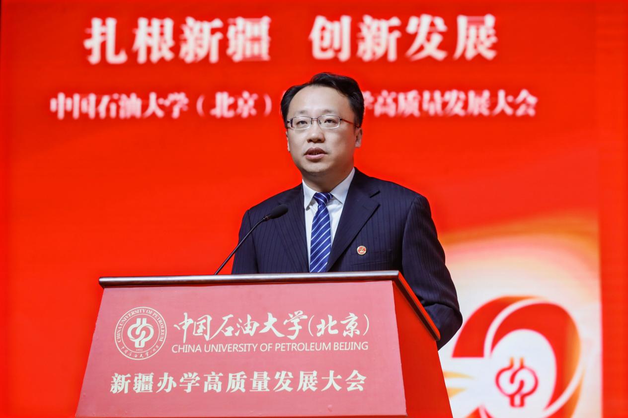 教育部思想政治工作司副司長龐謙在致辭中向長期以來關心、支持中國石油大學(北京)在新疆辦學的新疆維吾爾自治區及克拉瑪依市、在疆企業致以衷心的感謝,向各對口支援高校以及常年奮戰在邊疆教育一線的全體教職員工致以崇高的敬意。他指出,克拉瑪依校區的發展,是新時代高等教育蓬勃發展的生動縮影,也是教育服務國家戰略的典范實踐。他希望學校堅持立德樹人,在培養時代新人上展現新作為;堅持服務需求,在服務高質量發展上實現新突破;建強師資隊伍,在夯實發展基礎上探索新路徑;堅持深化改革,在部區共建、對口支援長效機制等框架內主動作為,在激發辦學活力上塑造新優勢。