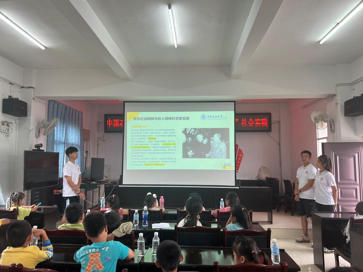 抵達新城社區后,團隊成員儲思航圍繞“戍國衛邊”主題進行宣講,通過講述民族英雄守衛祖國邊疆的故事帶領小朋友們感受和平的來之不易;團隊成員李元杰以石油精神與鐵人精神為主線,通過講述鐵人王進喜的故事,向小朋友們介紹了祖國石油行業的發展歷程以及鐵人精神的時代內涵。