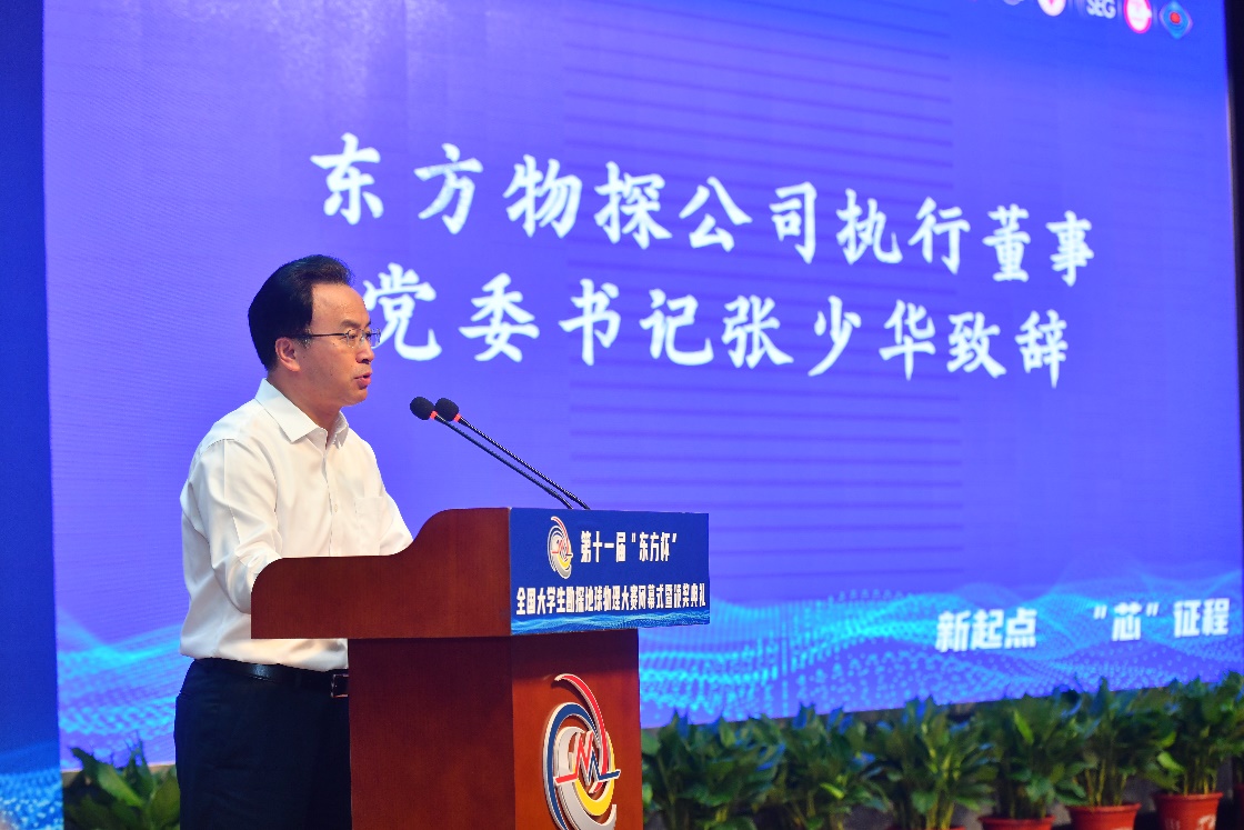 張少華在講話中指出,大賽歷經十一年發展,形成了研究生本科生組雙層級、處理解釋雙賽道、勘探地球物理軟件應用及開發雙品牌的賽事格局,希望青年學子們成為物探科技的奮進者、開拓者、奉獻者,在找油找氣、保障國家能源安全的偉大事業中書寫璀璨的人生華章。