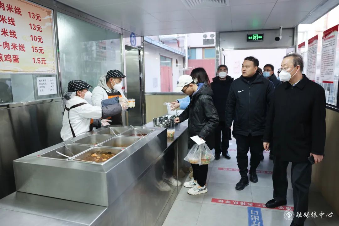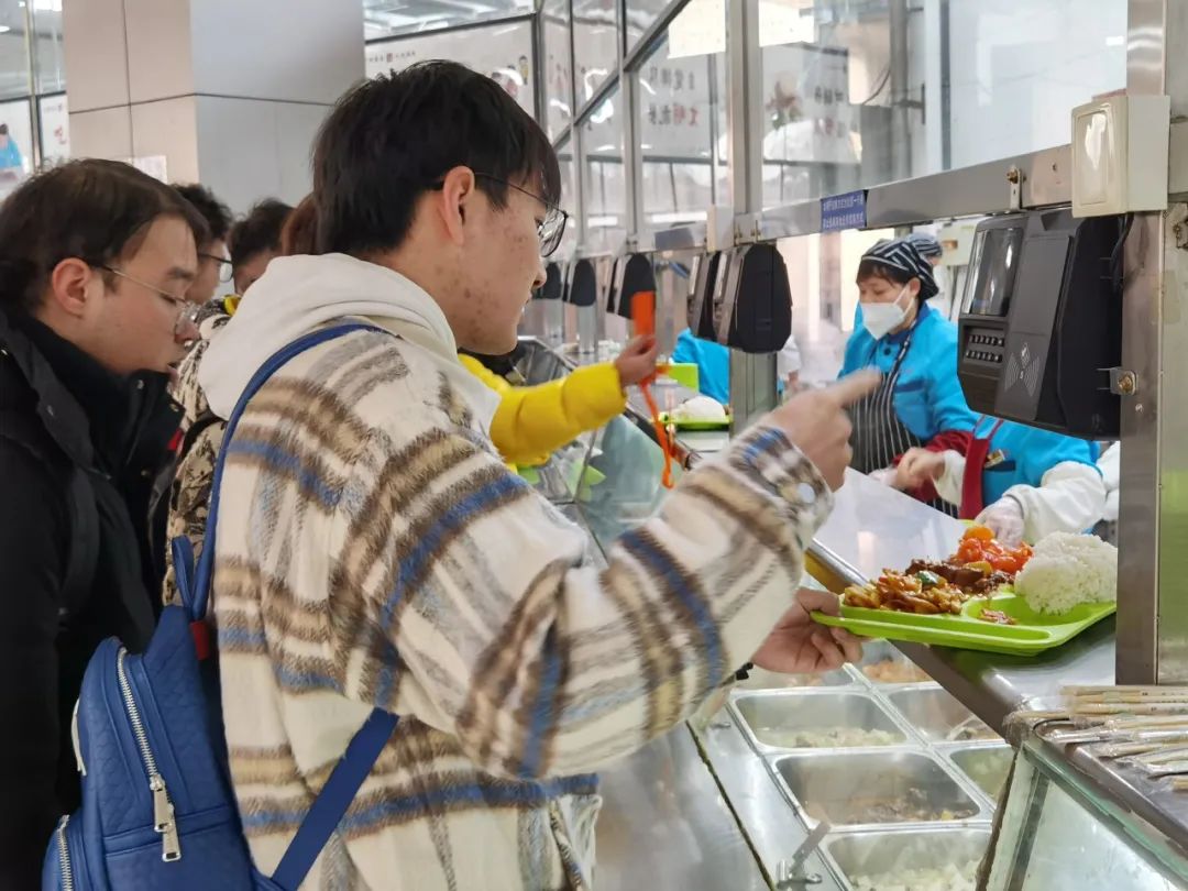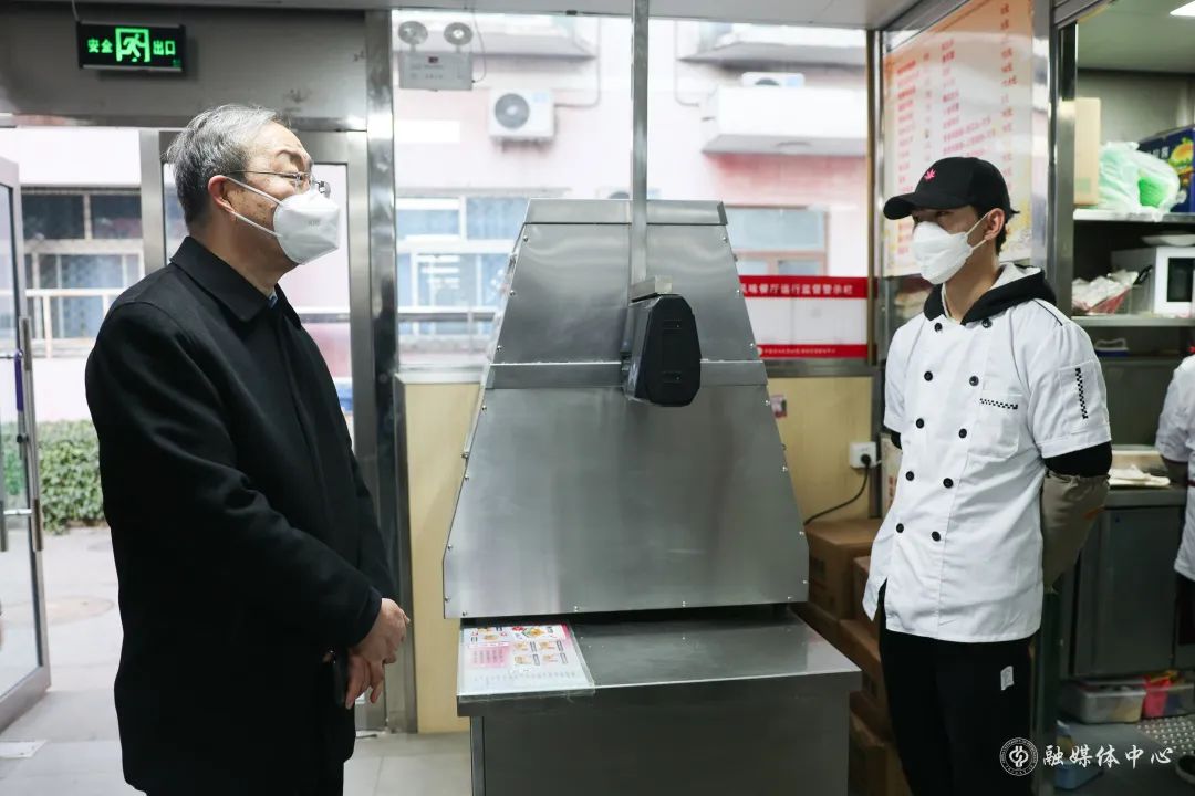 陳峰、文永紅一行還前往潤杰公寓風味檔口,實地了解餐飲服務保障工作,詳細詢問了各檔口的菜系口味、價格、食材來源以及開放時間等情況。陳峰強調,要充分認識食品安全及餐飲保供的重要性,積極發揮師生監督作用,認真聽取師生意見和建議,全力做好師生的生活服務保障工作。