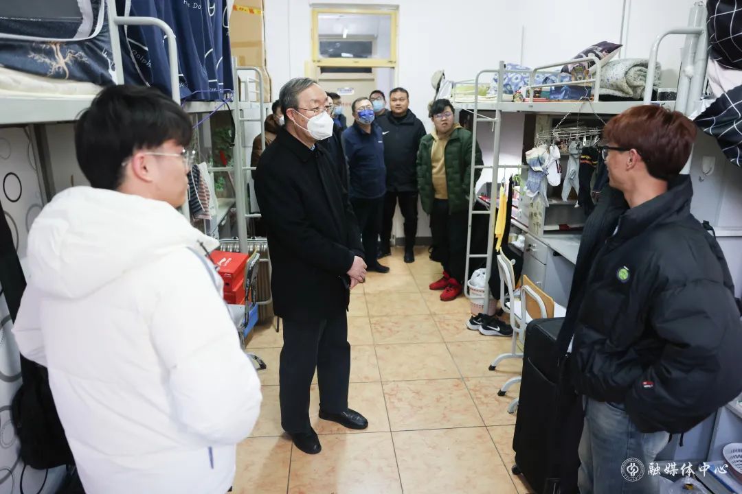 “春節過得怎么樣?”“工作找得怎么樣?”“宿舍感覺冷不冷?”陳峰、文永紅一行先后前往潤杰公寓1號樓、5號樓看望剛剛返校的同學,了解學生返校情況,并與同學們進行了親切交流,詢問學習和生活中遇到的困難,叮囑他們做好新學期的規劃,珍惜寶貴的校園時光,全身心投入到新學期的學習和生活,取得新的進步、收獲新的成績。陳峰還關心了學生就業、教學安排、宿舍供暖等問題,要求相關部門扎實做好春季開學工作。