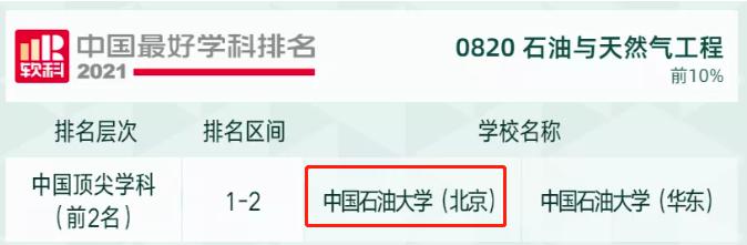 10月25日,軟科發布了“2021中國最好學科排名”,中國石油大學(北京)石油與天然氣工程學科以1355分排名全國第一,上榜“中國頂尖學科”,這是該學科連續五年以超過1200的分數蟬聯全國第一;安全科學與工程、化學工程與技術2個學科排名進入全國前10%,上榜“中國一流學科”;管理科學與工程學科比去年提升27位,進入該學科全國前30%行列。