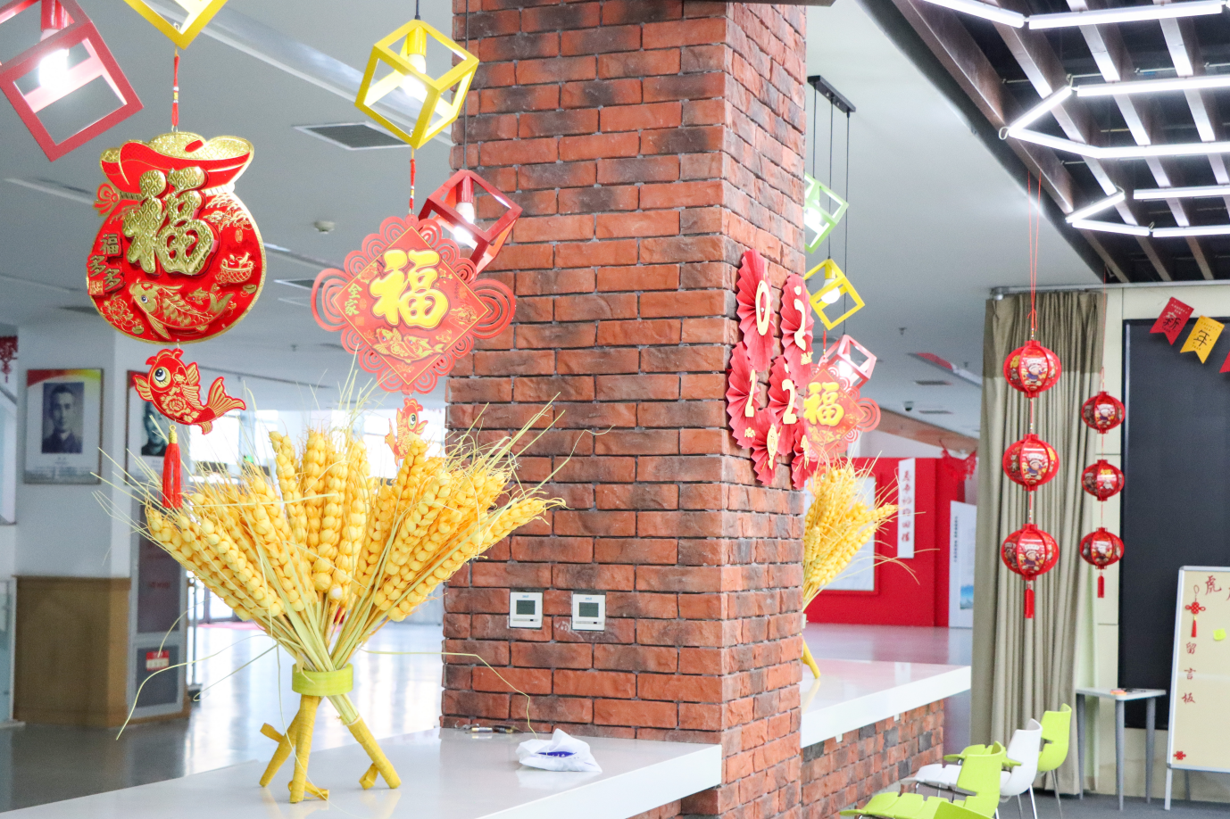1月31日是除夕,校園里隨處可見的燈籠、彩花、對聯,透露出濃郁的年味兒。昨夜的微雪后,空氣心曠神怡,校園一片歡樂祥和。