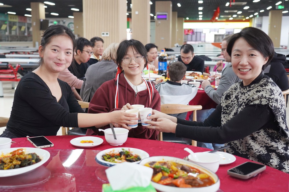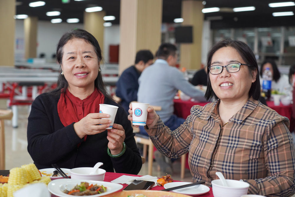團年飯現場,師生共同舉杯,致以美好祝愿。餐廳為師生們準備了豐盛的團年飯,美味可口的飯菜里溢出的是師生同心的溫暖與幸福。