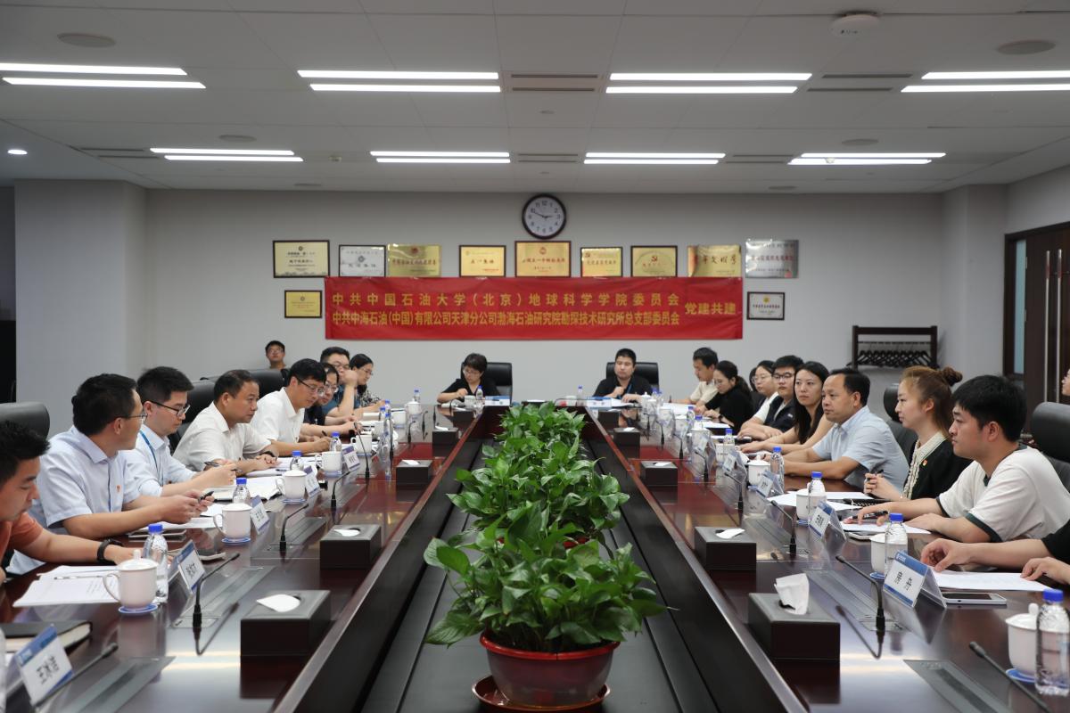 為全面貫徹落實習近平總書記關于能源安全新戰略重要指示批示精神和科技創新的重要論述,深入推進黨紀學習教育,創新黨建活動載體,不斷推動黨建與科研深化融合,7月16日,中石大地球科學學院赴中海石油(中國)有限公司天津分公司渤海石油研究院勘探技術研究所開展黨建共建活動,簽署黨建共建協議和地球科學科普教育基地暨大學生社會實踐基地共建協議書,并為基地揭牌。