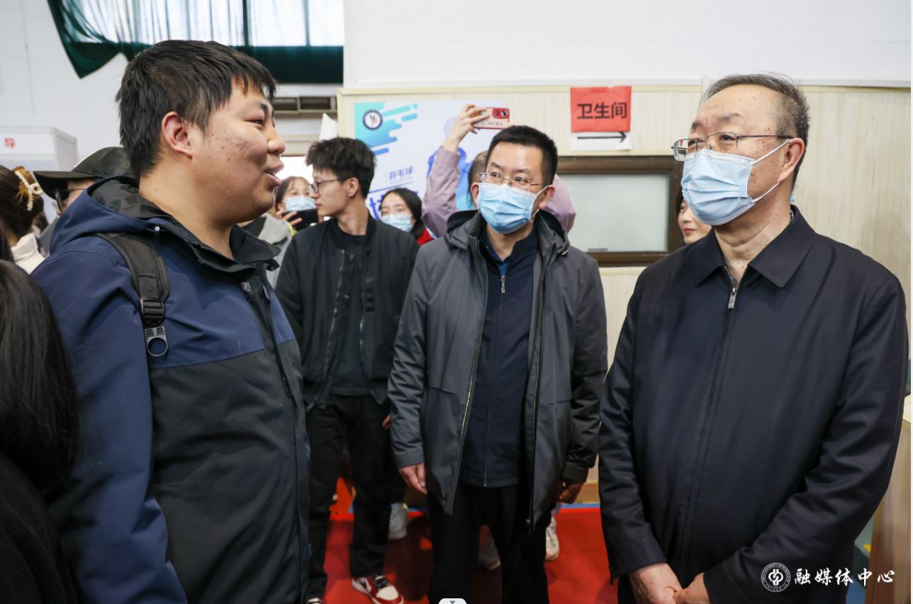 學校黨委書記陳峰、黨委副書記文永紅來到雙選會現場,看望招聘單位代表與求職畢業生,了解招聘單位需求,鼓勵畢業生把握機會、積極求職。