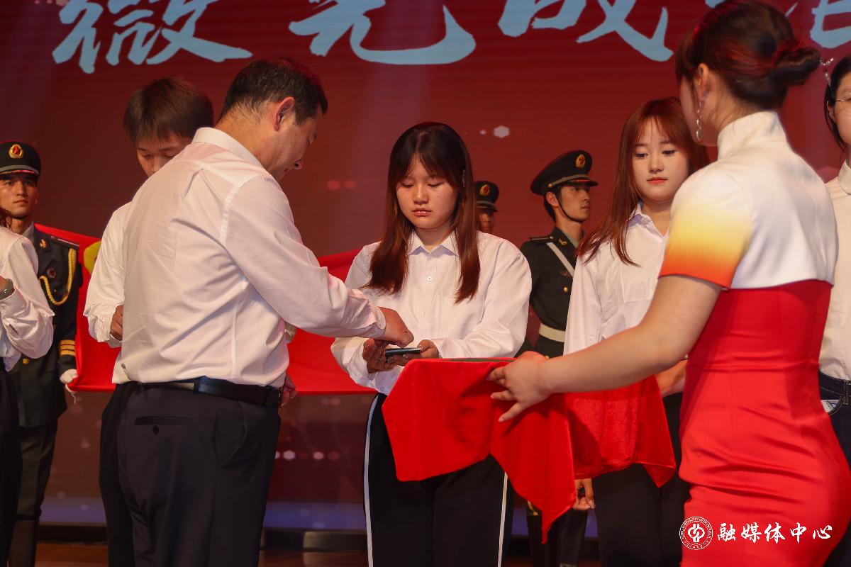 會(huì)前,黨委書記王同奇為2024上半年新發(fā)展團(tuán)員代表佩戴團(tuán)徽、頒發(fā)團(tuán)員證,學(xué)校團(tuán)委書記周學(xué)智主持入團(tuán)儀式,團(tuán)委副書記韓瑾帶領(lǐng)新發(fā)展團(tuán)員進(jìn)行入團(tuán)宣誓。