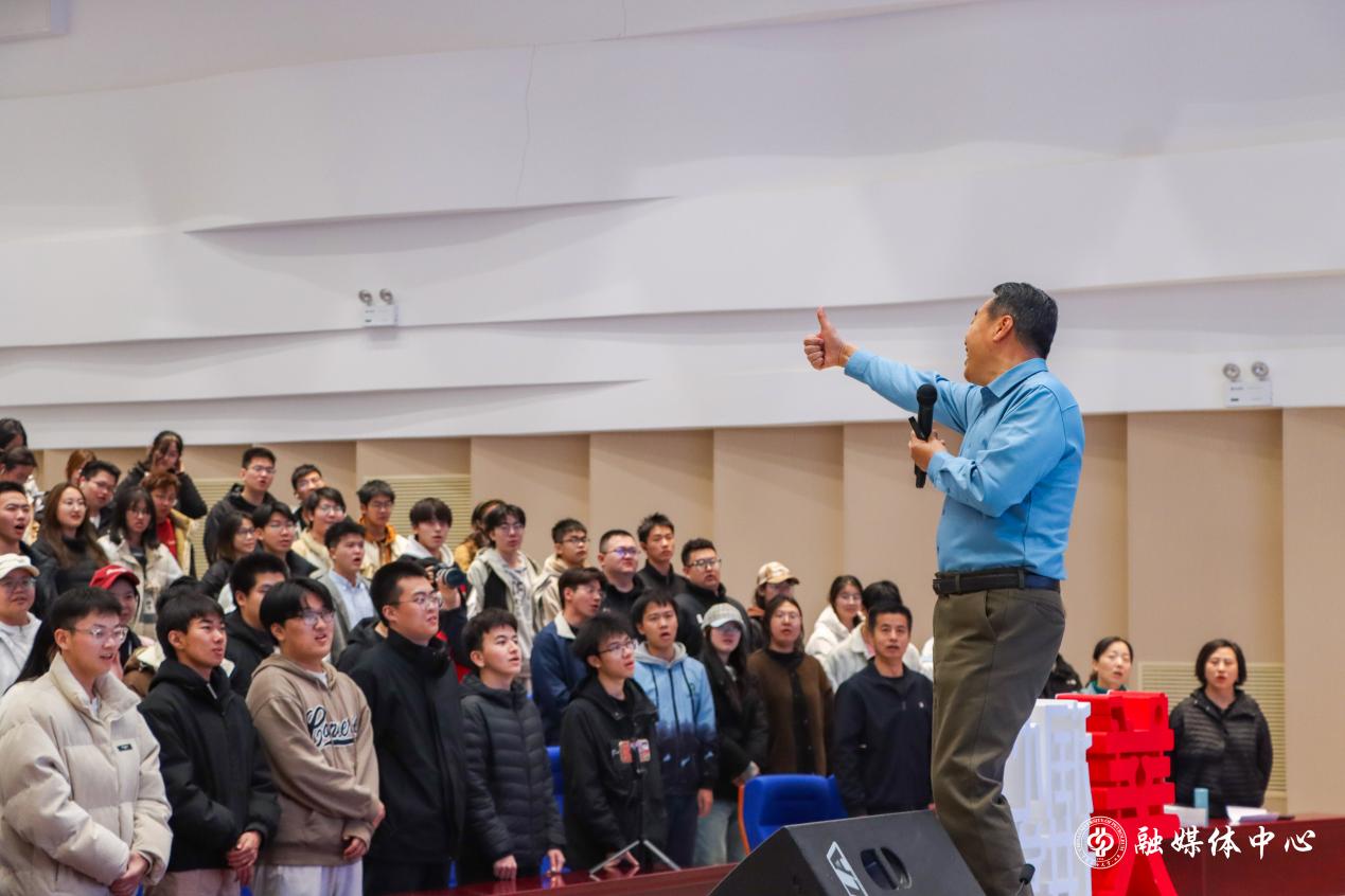 王永樺用專業且富有感染力的嗓音,帶領同學們一同高歌。歌聲回蕩在音樂廳的每一個角落。臨近尾聲,他深情演唱《你是一面旗》。體育與人文藝術學院院長唐亮為王永樺頒發潤心講堂專家聘書。