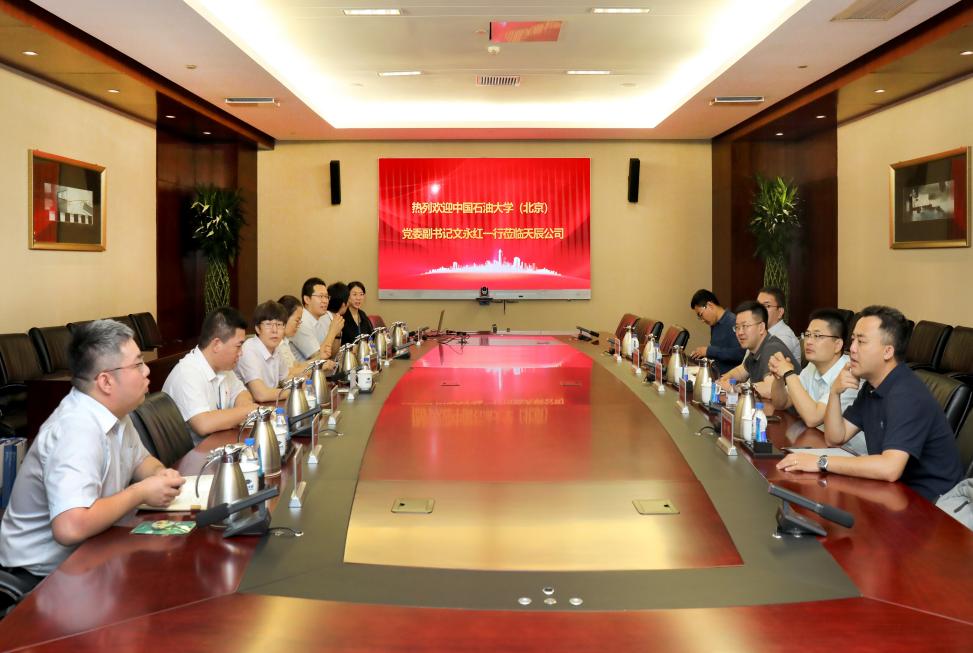 5月22日,學校黨委副書記文永紅帶隊赴中國化學天辰有限公司走訪交流,就進一步深化產(chǎn)學研協(xié)同、校企聯(lián)合人才培養(yǎng)等內(nèi)容與企業(yè)進行座談,天辰公司總經(jīng)濟師蘆玲會見了文永紅一行。中國石油大學(北京)學生工作部(處)、化學工程與環(huán)境學院、就業(yè)指導中心相關領導,天辰公司技術發(fā)展部、人力資源部等相關部門負責人和中國石油大學(北京)校友參加活動。