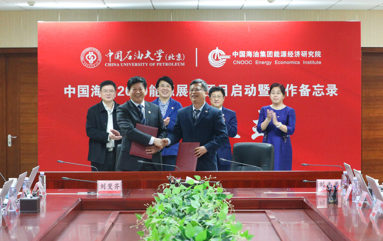 李根生、郭勝偉分別代表校企雙方簽署中國石油大學(北京)與中國海油能源經濟研究院加強智庫建設合作備忘錄。根據備忘錄,雙方將堅持合作共贏、優勢互補、開放共享的原則,在能源經濟與政策、“雙碳”政策及影響、“一帶一路”能源合作、行業體制機制改革、行業發展形勢研究、戰略規劃與公司管理、企業低碳轉型與可持續發展、科技創新與數字化、重大項目咨詢評估等領域積極開展合作研究,并在專業人才培養、合作平臺搭建、智庫成果發布、信息資源分享等方面加強合作交流。唐旭、孫海萍分別代表雙方簽署中國海油2060能源展望模型研究的項目合同。