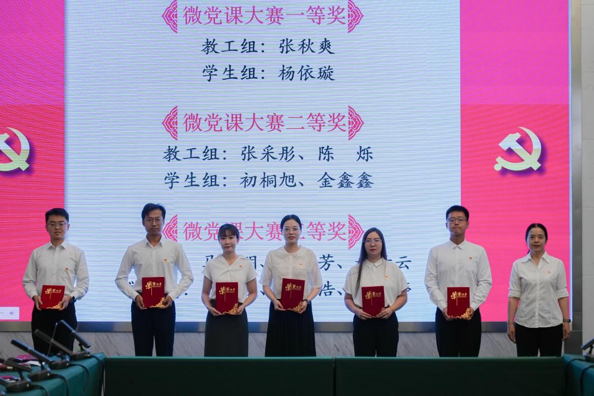 校區領導為入選全國黨建“雙創”“雙帶頭人”教師黨支部書記工作室單位授牌,為微黨課大賽獲獎者頒發證書。