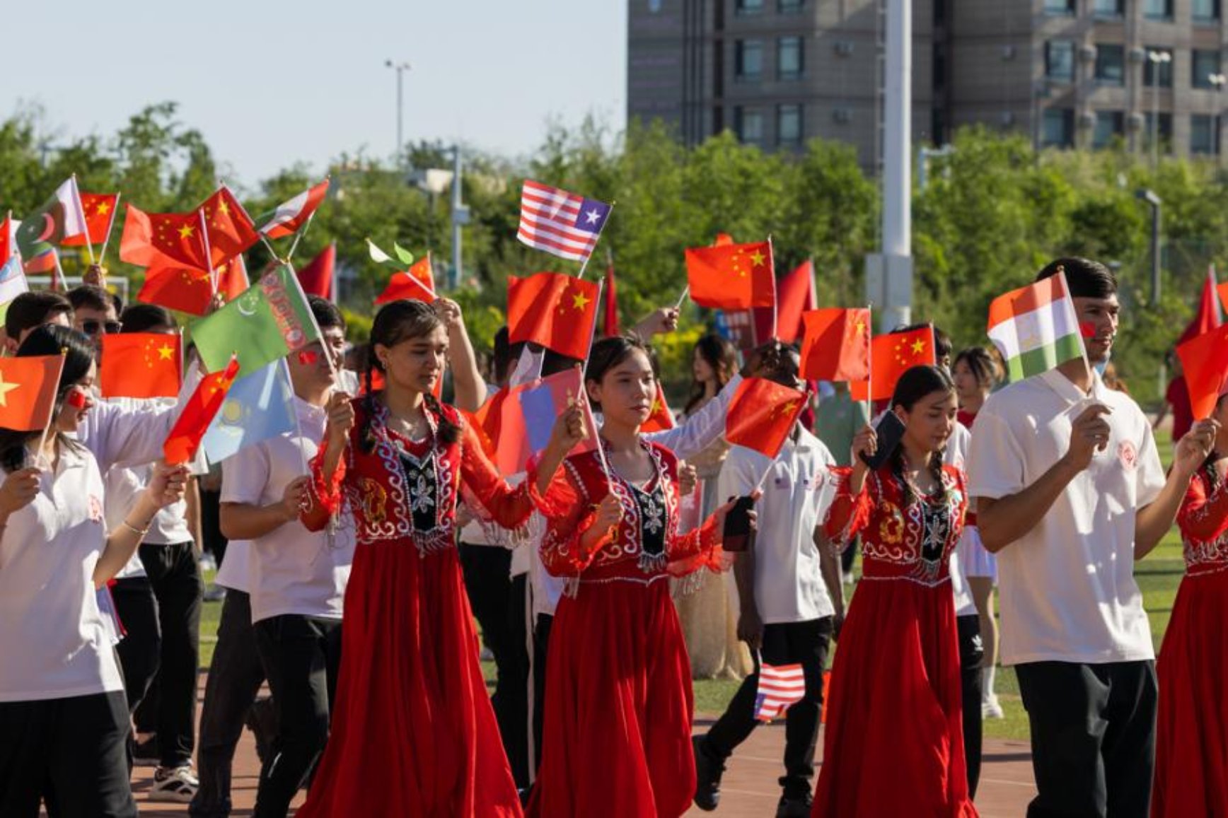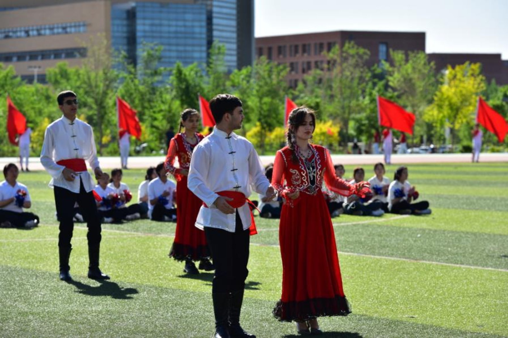 留學生方陣充分展現了“一帶一路”沿線國家的多元文化。留學生代表們身著不同風格的民族服飾步入會場,熱情地向現場觀眾揮手互動。來自土庫曼斯坦、塔吉克斯坦、哈薩克斯坦等11個國家的40余名留學生參加了開幕式及各項比賽。他們身著不同風格的民族服飾步入會場,表演了特色民族舞蹈,展現了“一帶一路”沿線國家的文化,成為紅旗操場上一道青春和友誼的風景線。
