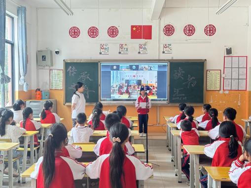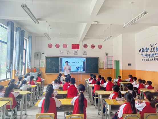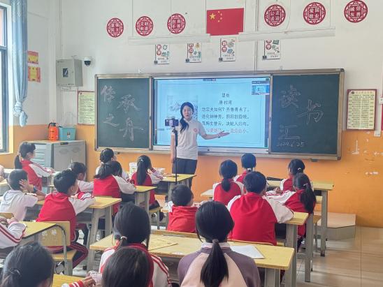 中石大第二十五屆研支團三位成員與自己所教的小學生們共同呈現了一臺生動的詩詞課堂。研支團隊長朱千瑞以《詠鵝》一詩講述了自己與詩詞的初識,以詩句“會當凌絕頂,一覽眾山小”為切入點,分享了自己最喜歡的古詩詞《望岳》。研支團成員羅壯認為讀詩詞可以觸摸歷史的溫度、可以涵養自身修養,詩詞文化既雕琢言行又雕琢心靈。研支團成員張家澤講述了詩詞帶給自己的啟迪與感悟,分享了詩詞在日常生活中的應用。